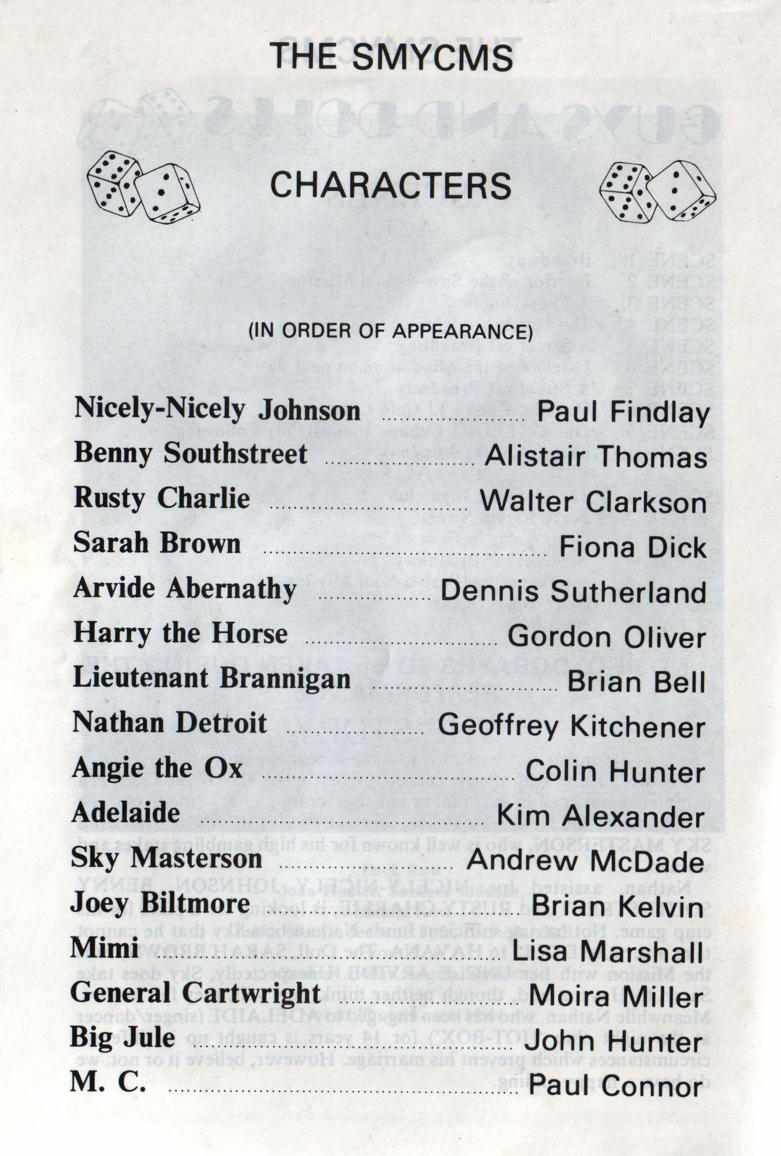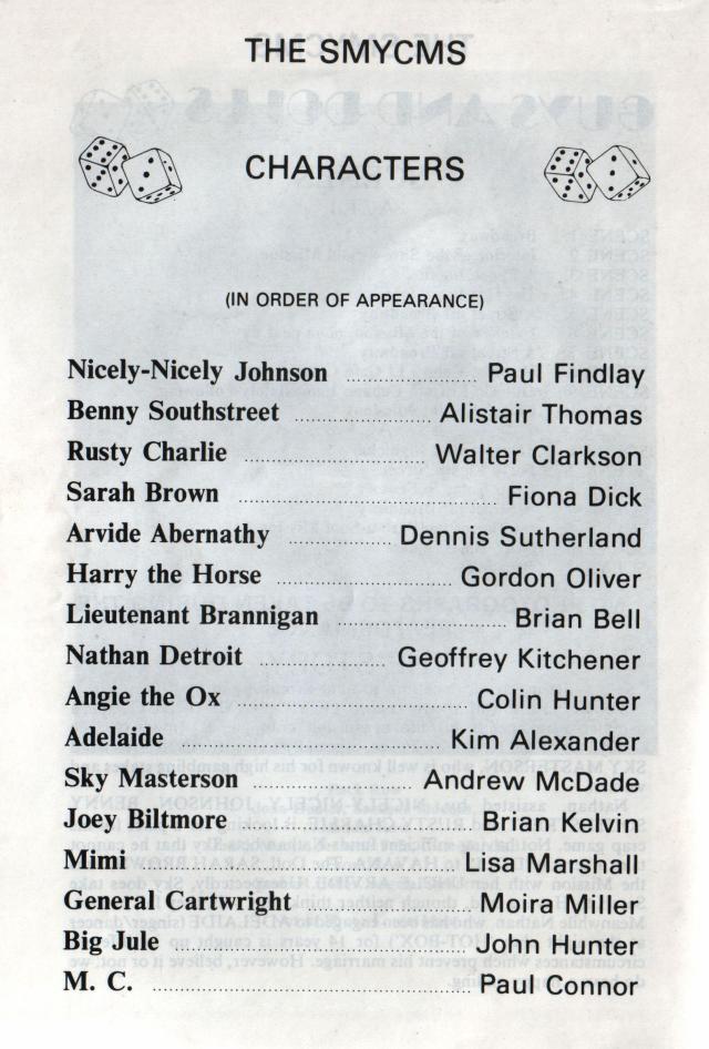 Here is a selection of photos from the program of Guys And Dolls, Smycms Production of 1989. As we read from the Presidents message,